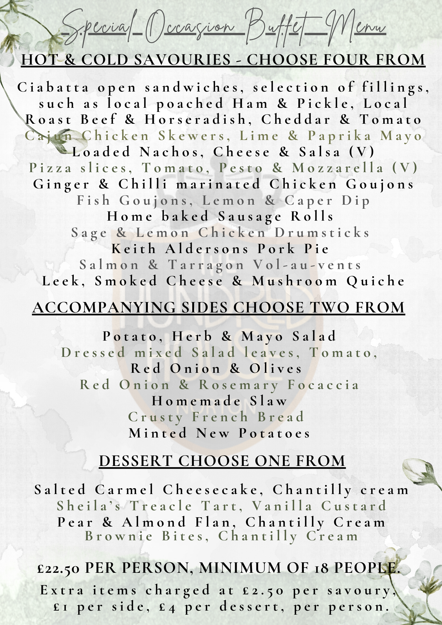 *Minimum of 18 people for this menu. If there is any other dishes you would specifically like, please do let us know.