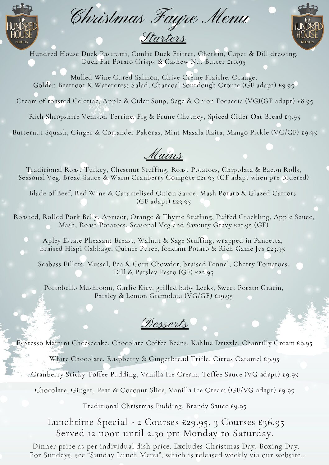 Christmas Fayre Menu at The Hundred House