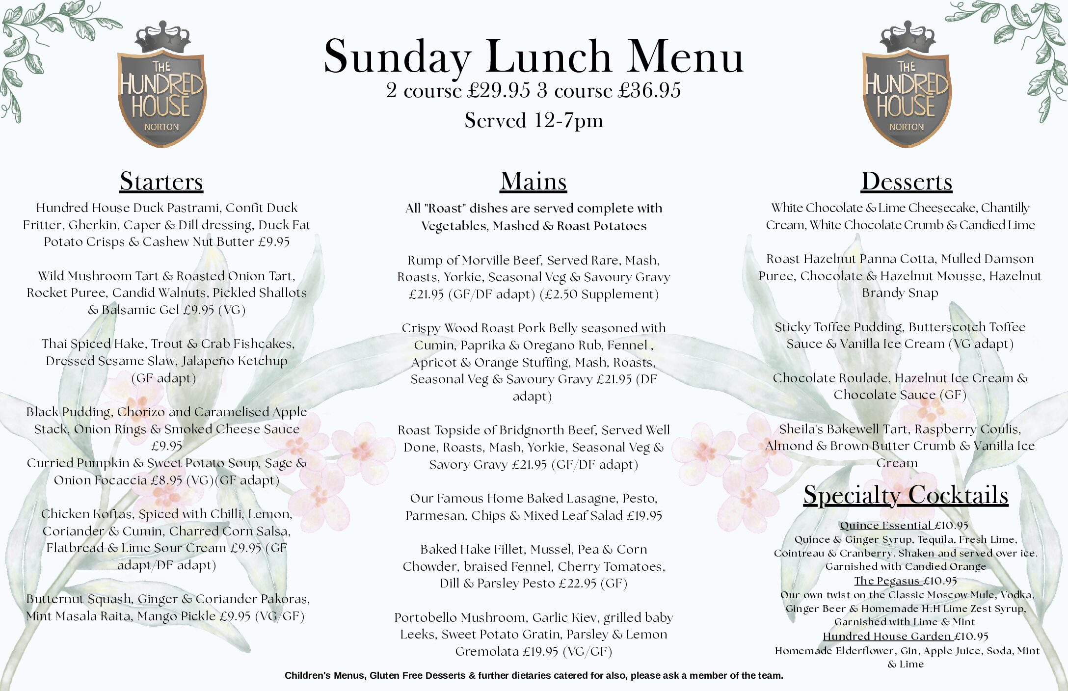 Best Sunday Lunch in Telford, served 12 until 7 pm every Sunday.